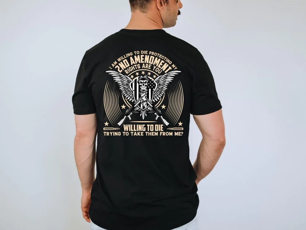 Protect your 2nd Amendment rights in style with this comfortable t-shirt. Show your support for freedom with this bold design featuring the iconic 2nd Amendment emblem. The perfect casual addition to any patriot's wardrobe.