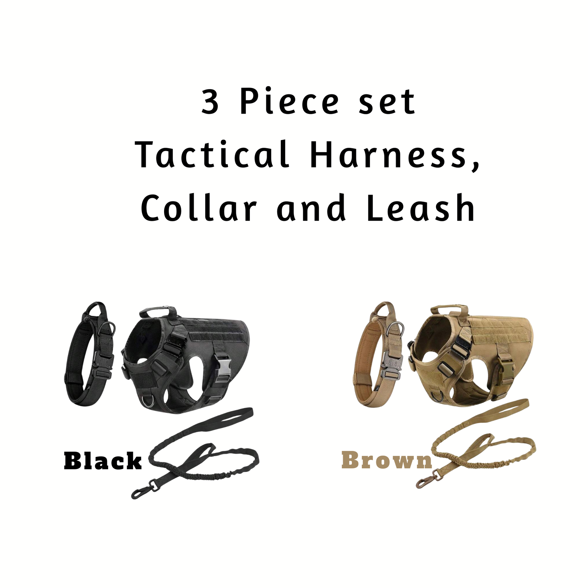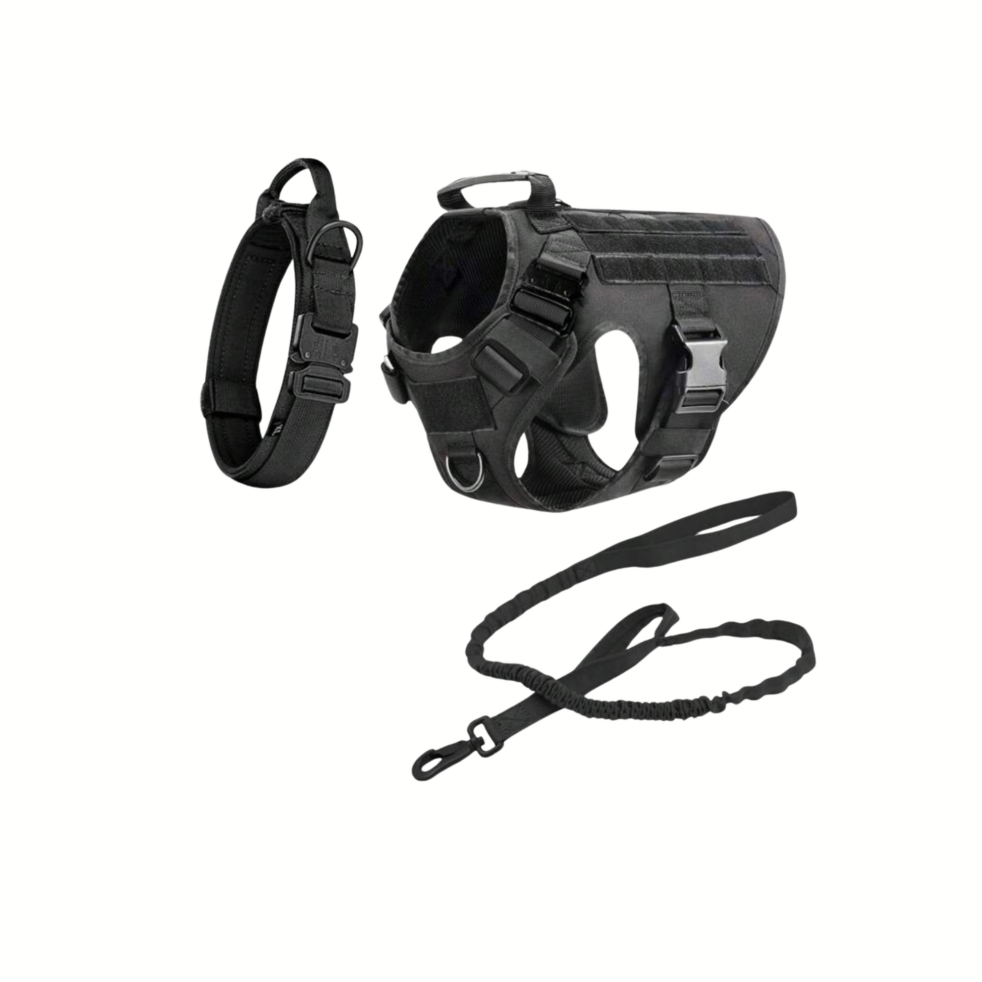 Designed for tactical use, this harness set is perfect for walking your dog without causing harm or discomfort. Its no-choke design ensures your dog's safety and comfort, while allowing you to easily control and guide them on their walk. With this harness, you and your furry friend can confidently explore the great outdoors.