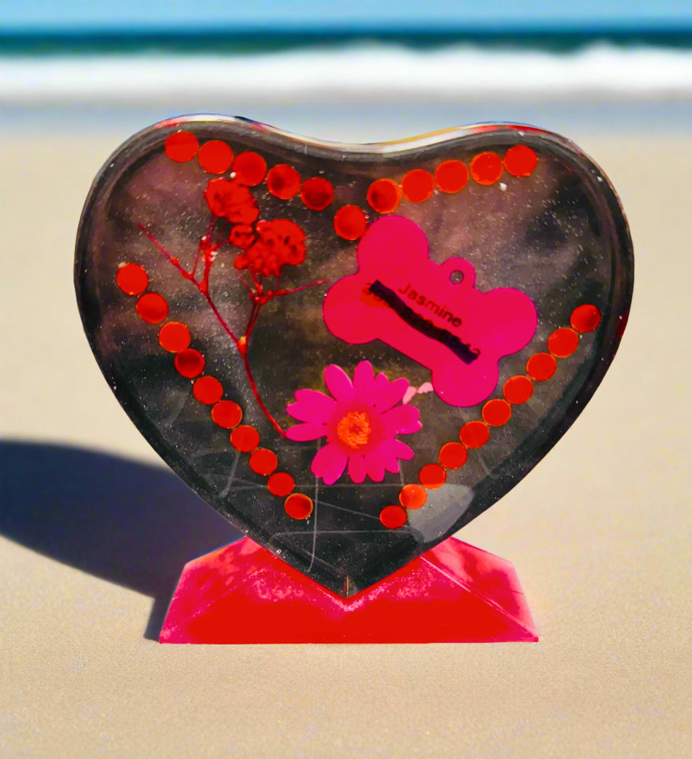 Looking for a heartfelt gift? Our custom-made 4" solid heart with base is the perfect keepsake for any occasion, made specifically for you. Show your loved ones how much they mean to you with this unique and sentimental gesture.
