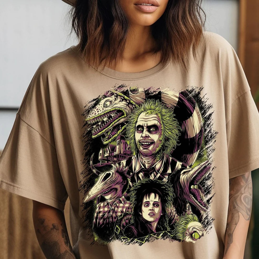 Face your fears with the Beetle Juice T-shirt! Show your daring side and take the plunge into the unknown with its eye-catching, iconic design. Dare to be bold and unleash your wild spirit into the world. Wear the Beetle Juice T-shirt and feel empowered!