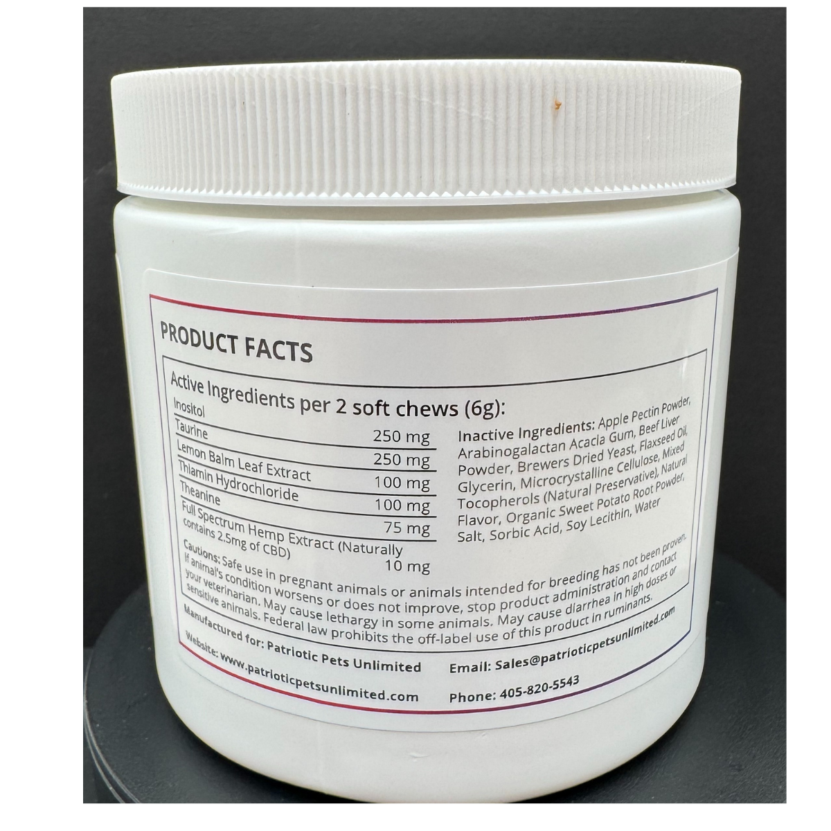 Keep your furry friend calm and relaxed with Calming CBD dog supplements. This product contains CBD to help ease anxiety and promote calmness in dogs. Add it to your pup's routine and see the benefits of a calmer and happier dog.