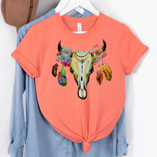 Bull Skull with Flowers Short Sleeve T-Shirts