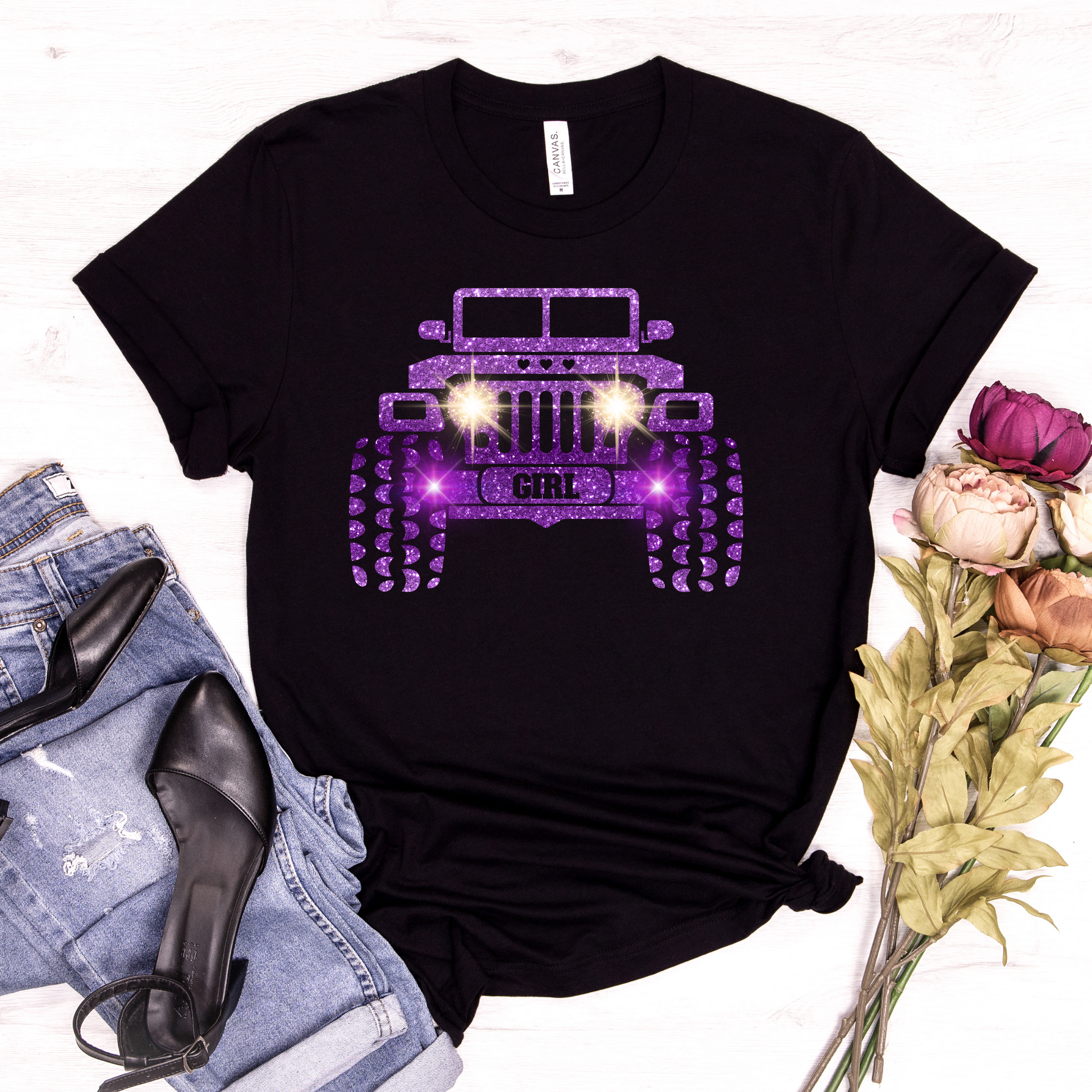 Make a statement in this fun, Jeep Girl T-shirt. Get ready for the off-road action in this one-of-a-kind tee, perfect for any Jeep-lovin' gal. So hop in, buckle up, and get ready to take on the wild, wild ride in style. Your wardrobe will thank you!