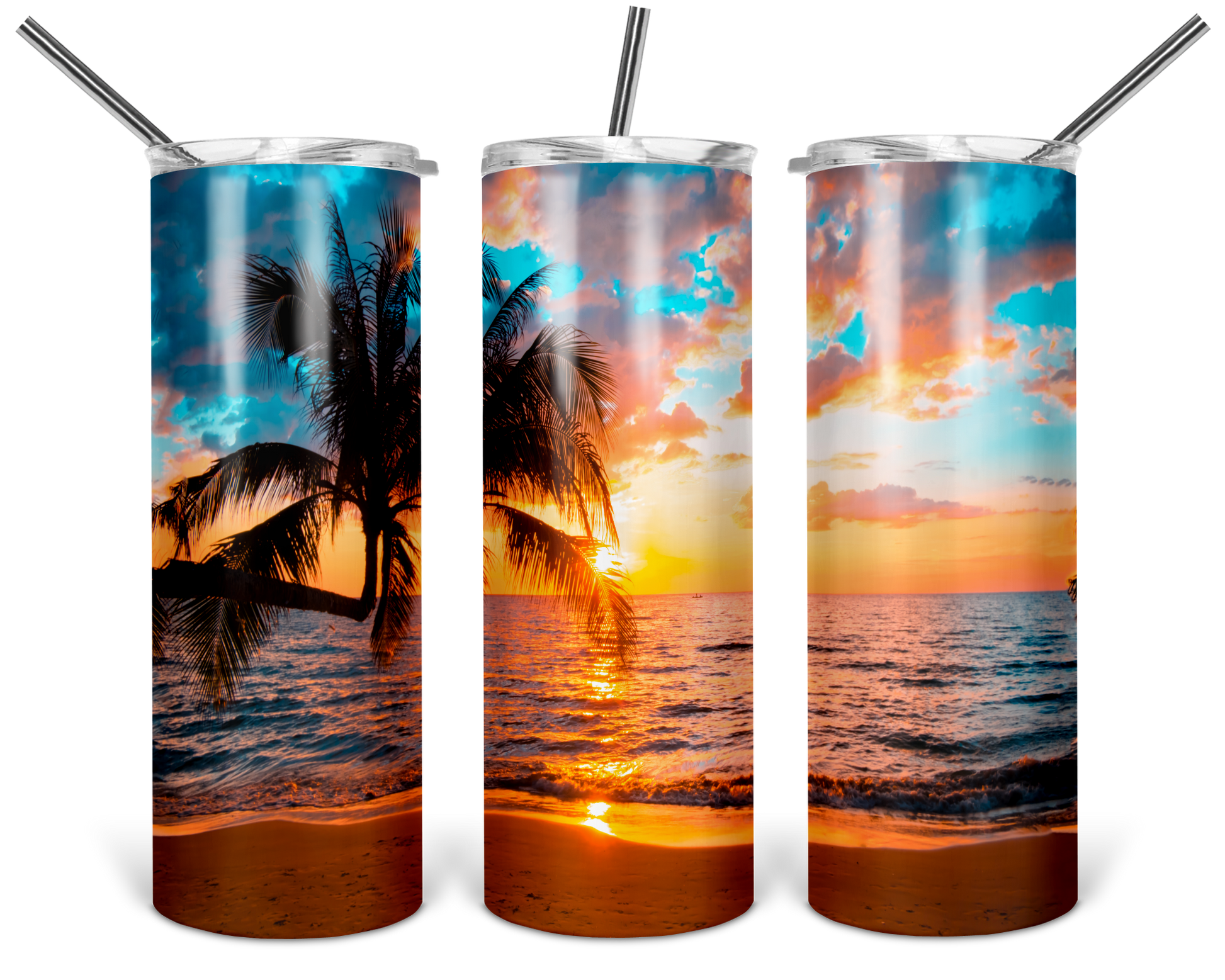 Take a plunge into your summer dreams and make a splash with the Ocean Sunset Tumbler. With its ocean, sunset, and palm tree vibes, this tumbler invites you to relax and challenge yourself to explore a life of adventure!