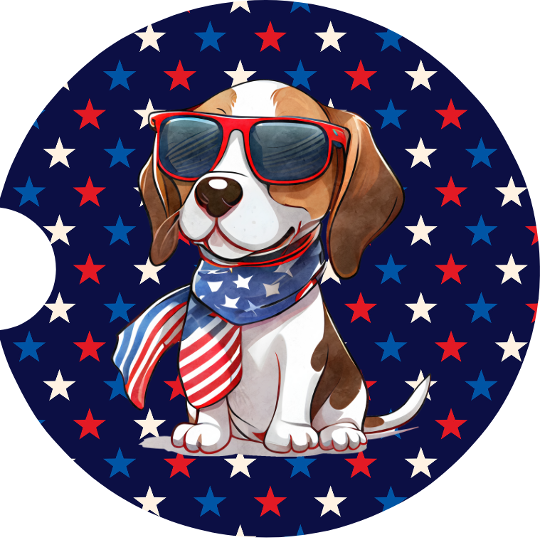 Bring some patriotism to your car with this pupperific car coaster! The Patriotic Pup 1 Car Coaster makes your car look as cool as chillin' with a pup at the park. Show your true colors and add some pup-triotism to your ride. Woof! Set of 2