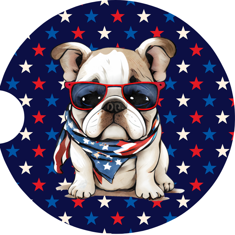 Bring some patriotism to your car with this pupperific car coaster! The Patriotic Pup 1 Car Coaster makes your car look as cool as chillin' with a pup at the park. Show your true colors and add some pup-triotism to your ride. Woof! Set of 2