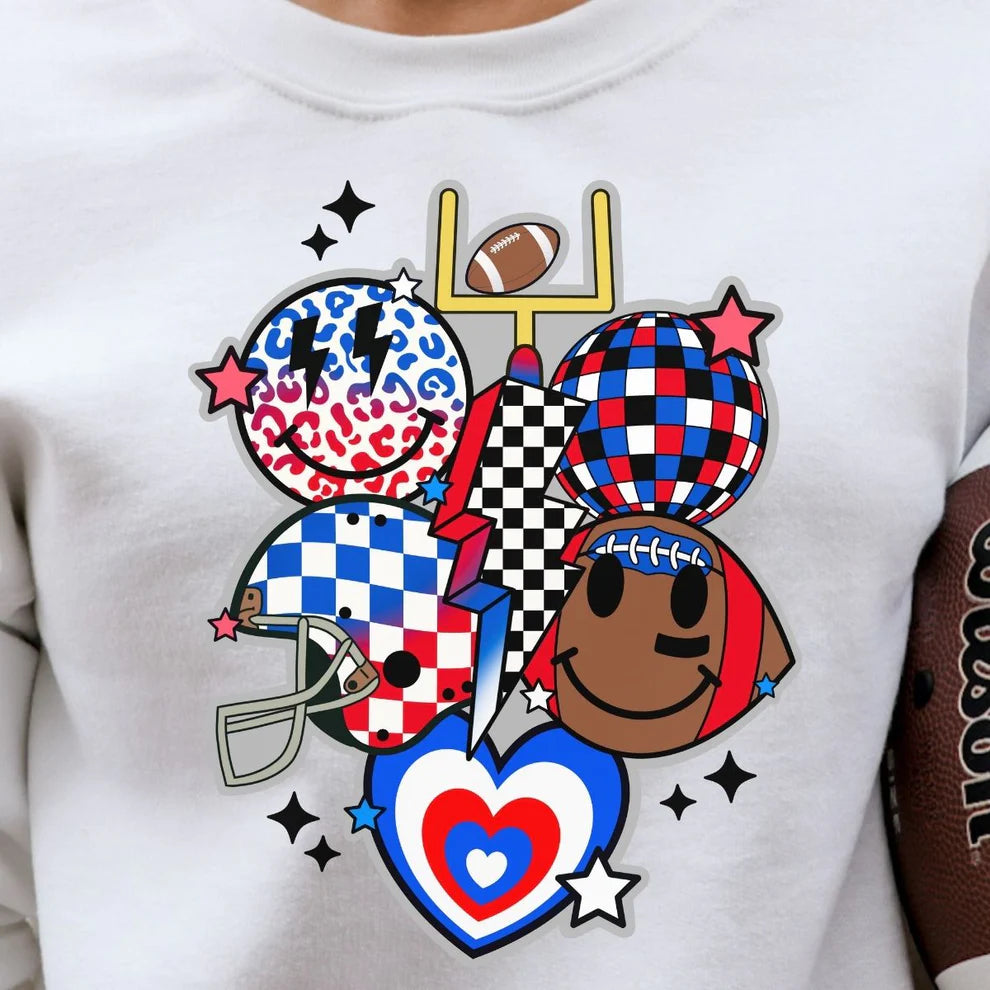 Ready for a throwback? Get that retro look with this awesome football t-shirt, featuring bold red, white, and blue colors. Get ready to make a statement with this fun and fashionable t-shirt! It's time to show off your retro style and love for football!